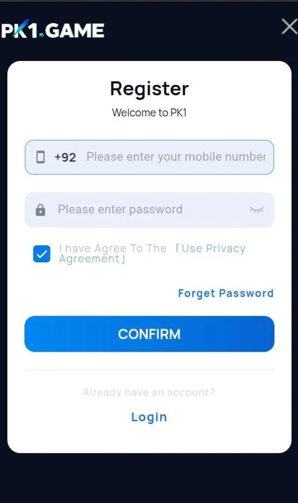 It takes a short time to create an account on PK1 APK. Registration only requires users a mobile number and a password.